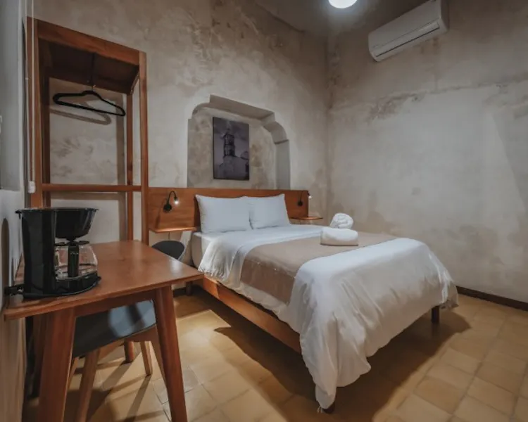 This room, dating back to the colonial era, has been carefully restored to preserve its historical essence. The original walls, constructed with masonry and stone dust, lend the space an authentic character and a deep connection to its history. Due to this type of construction, some areas of the walls may show signs of dampness. This is common in houses in the Historic Center; however, its rustic appearance is considered part of the charm of the place. Its double-height ceiling (only in the bathroom) adds a touch of coolness, transforming this room into a haven of peace that invites contemplation, where history and modernity merge harmoniously. We have a dehumidifier for this room. It is recommended to keep it on as much as possible, with two-hour breaks between each cycle. We strongly recommend turning it on at night and when leaving the room, as the walls can retain moisture due to the climate and the type of construction.