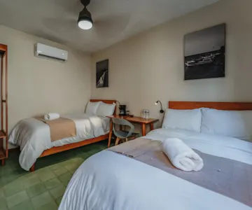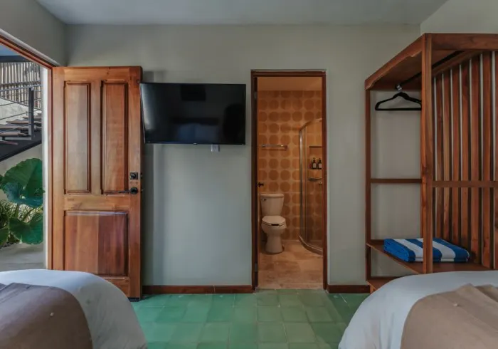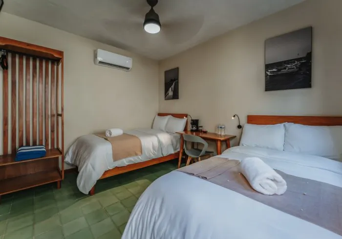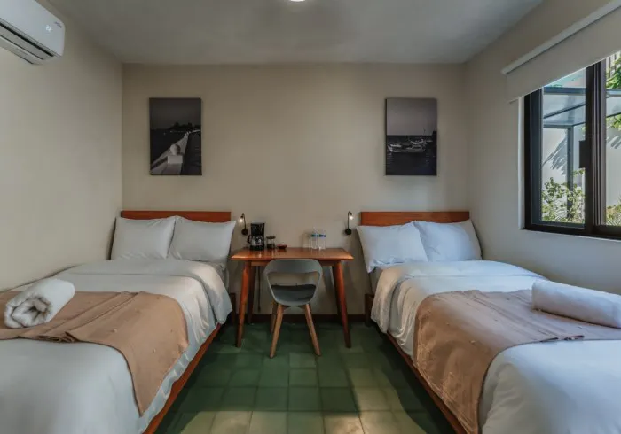 In this space, you'll find a room dating back to the colonial era, restored with a modern touch and showcasing the colorful pasta tile floors that adorned the old houses. The fusion of both eras creates a harmonious and clean atmosphere, offering a space for enjoyment and a feeling of warmth. Mur Mura C4 is equipped with two single beds and is located on the ground floor.